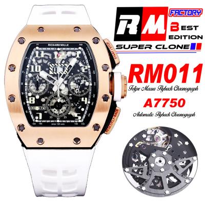 Home Richard Mille RM011 Felipe Massa A7750 Automatic Chronograph Mens Watch RMF Best Edition RG Black Dial White Rubber Strap CHS