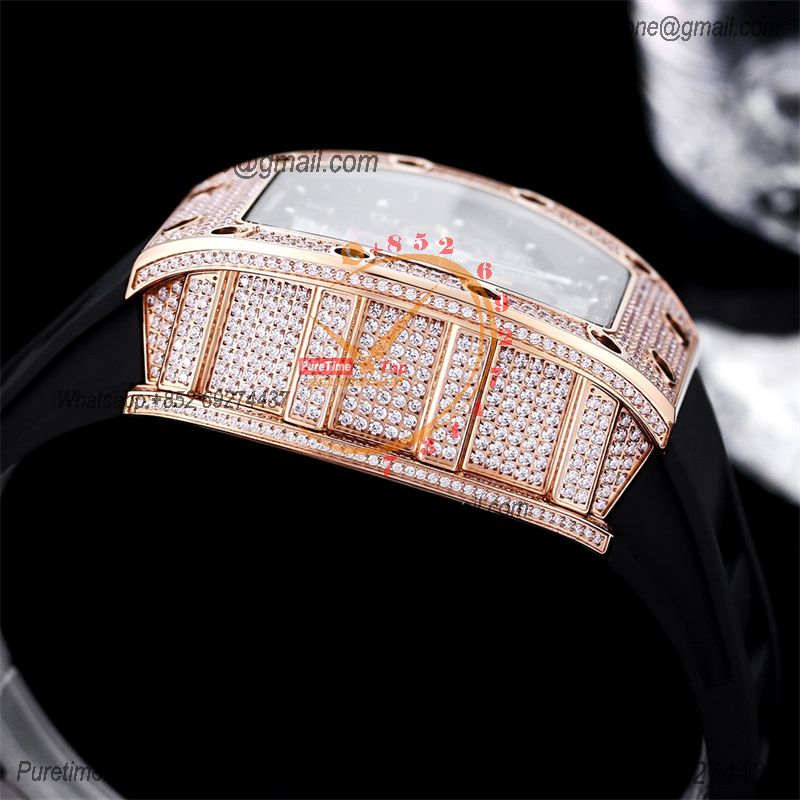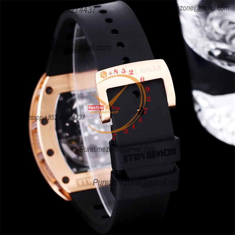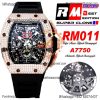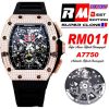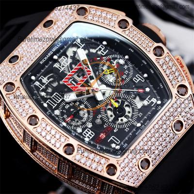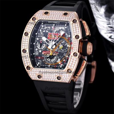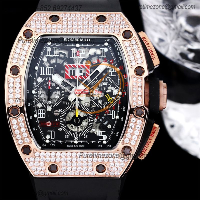 RM011 Felipe Massa A7750 Automatic Chronograph Mens Watch RMF Best Edition RG Diamonds Bezel Black Dial Rubber Strap CHS