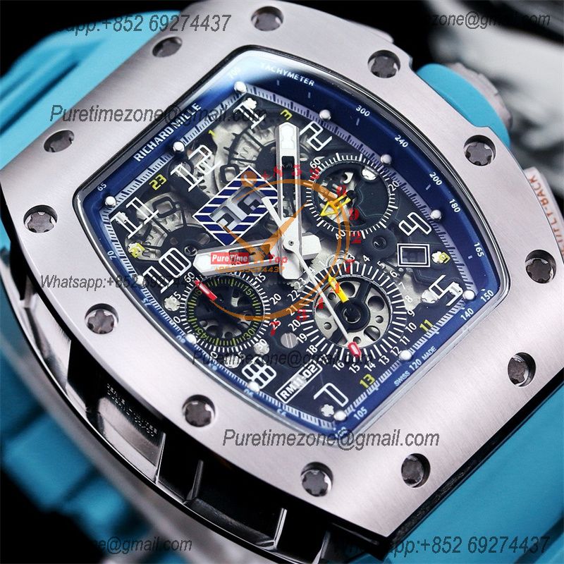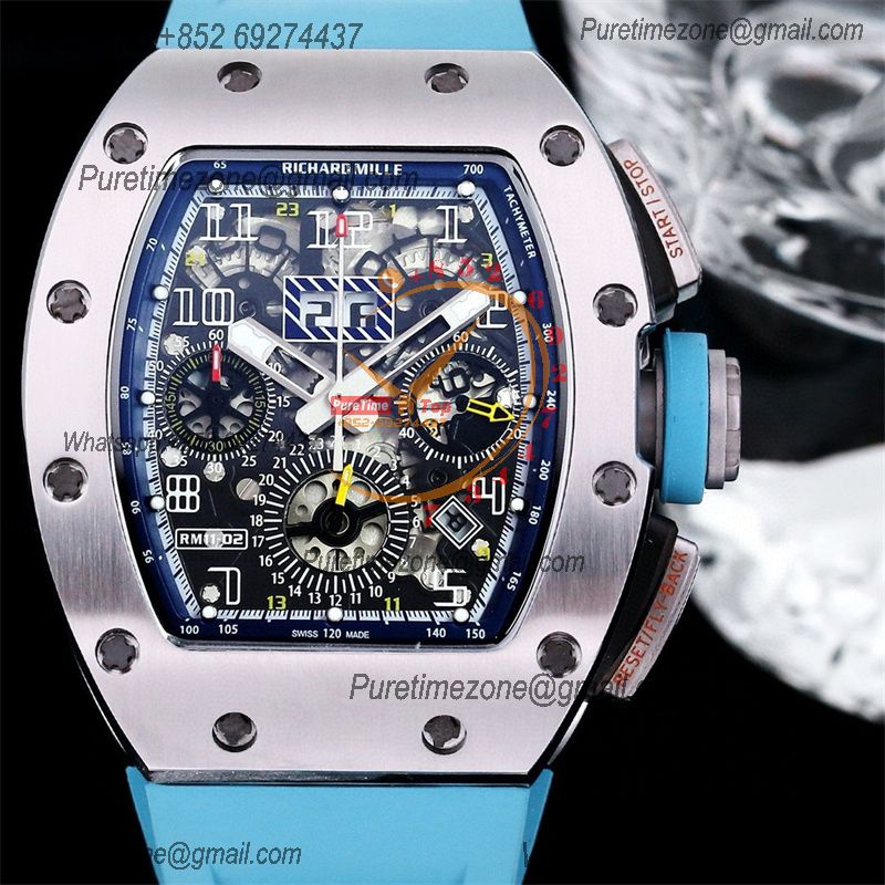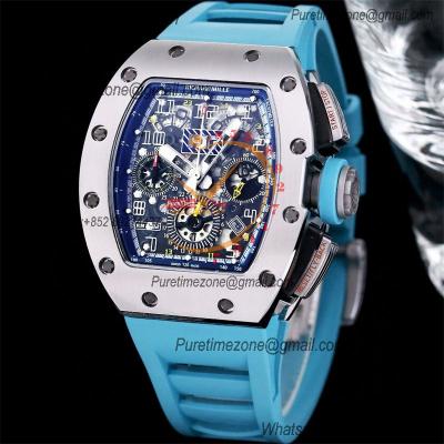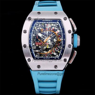 RM011 Felipe Massa A7750 Automatic Chronograph Mens Watch RMF Best Edition SS Black Dial Blue Rubber Strap CHS