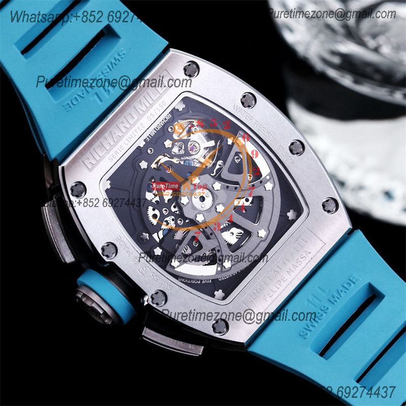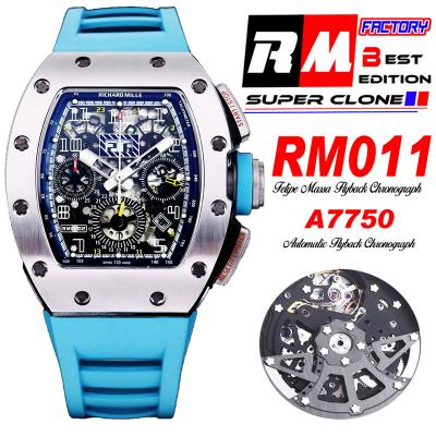 Home Richard Mille RM011 Felipe Massa A7750 Automatic Chronograph Mens Watch RMF Best Edition SS Black Dial Blue Rubber Strap CHS