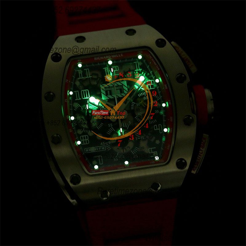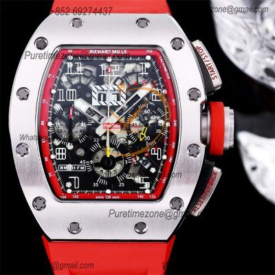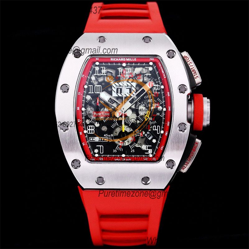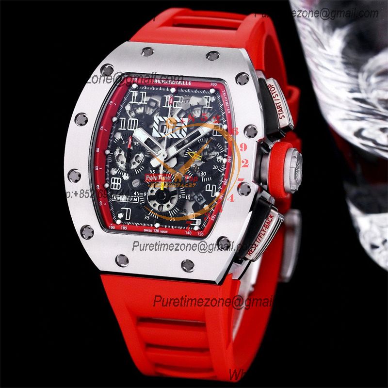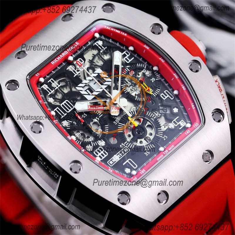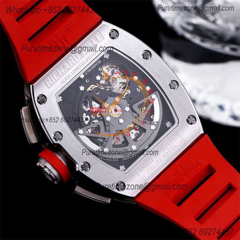 RM011 Felipe Massa A7750 Automatic Chronograph Mens Watch RMF Best Edition SS Black Dial Red Rubber Strap CHS