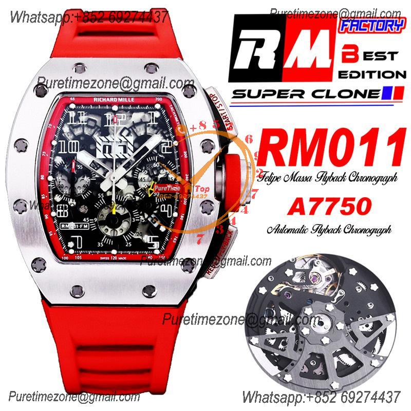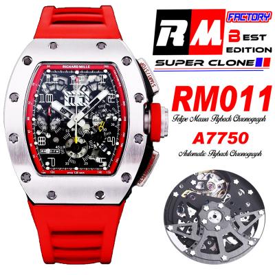 Home Richard Mille RM011 Felipe Massa A7750 Automatic Chronograph Mens Watch RMF Best Edition SS Black Dial Red Rubber Strap CHS