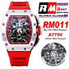 RM011 Felipe Massa A7750 Automatic Chronograph Mens Watch RMF Best Edition RG Black Dial White Rubber Strap CHS