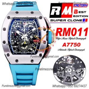 RM011 Felipe Massa A7750 Automatic Chronograph Mens Watch RMF Best Edition SS Black Dial Blue Rubber Strap CHS $900.00 $600.00