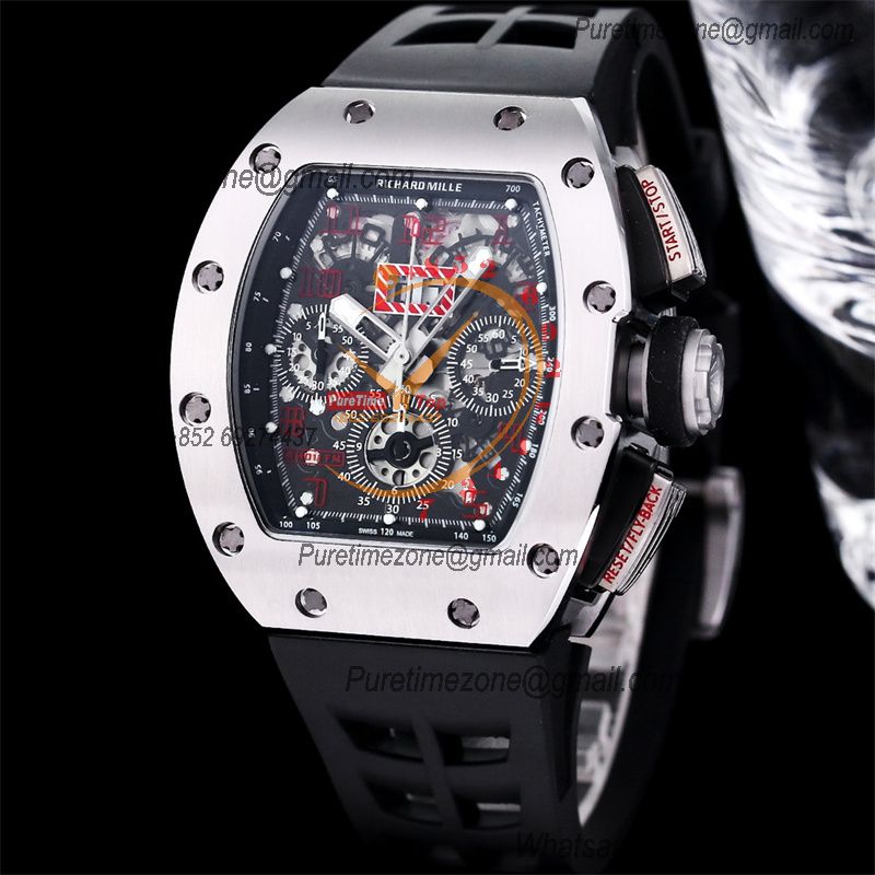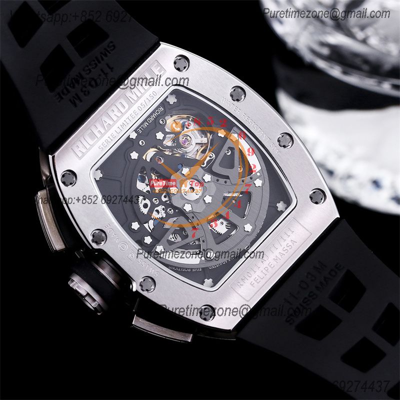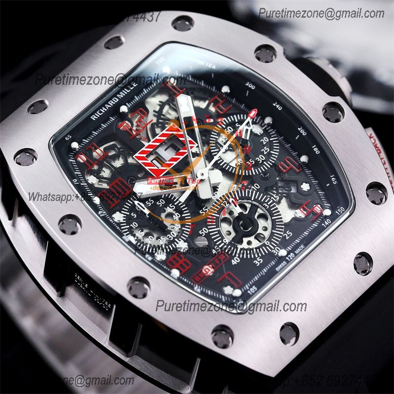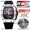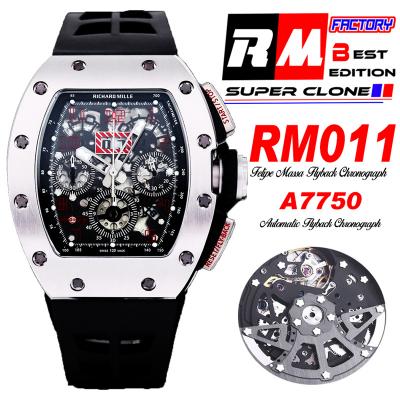 Home Richard Mille RM011 Felipe Massa A7750 Automatic Chronograph Mens Watch RMF Best Edition SS Black Dial Rubber Strap CHS
