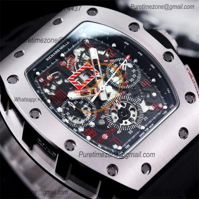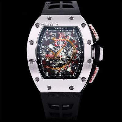 RM011 Felipe Massa A7750 Automatic Chronograph Mens Watch RMF Best Edition SS Black Dial Red Rubber Strap CHS