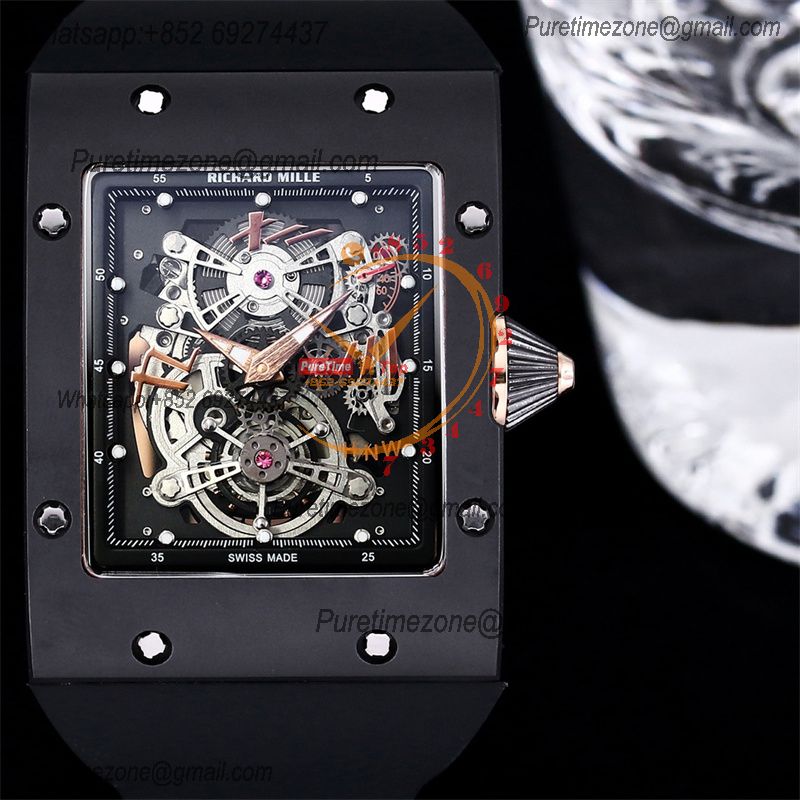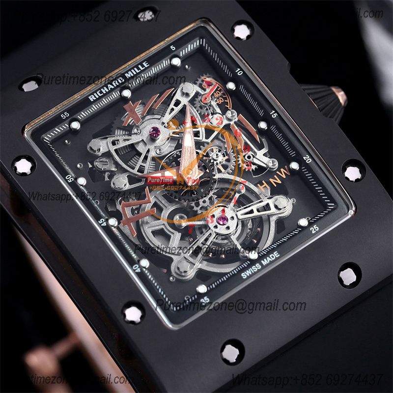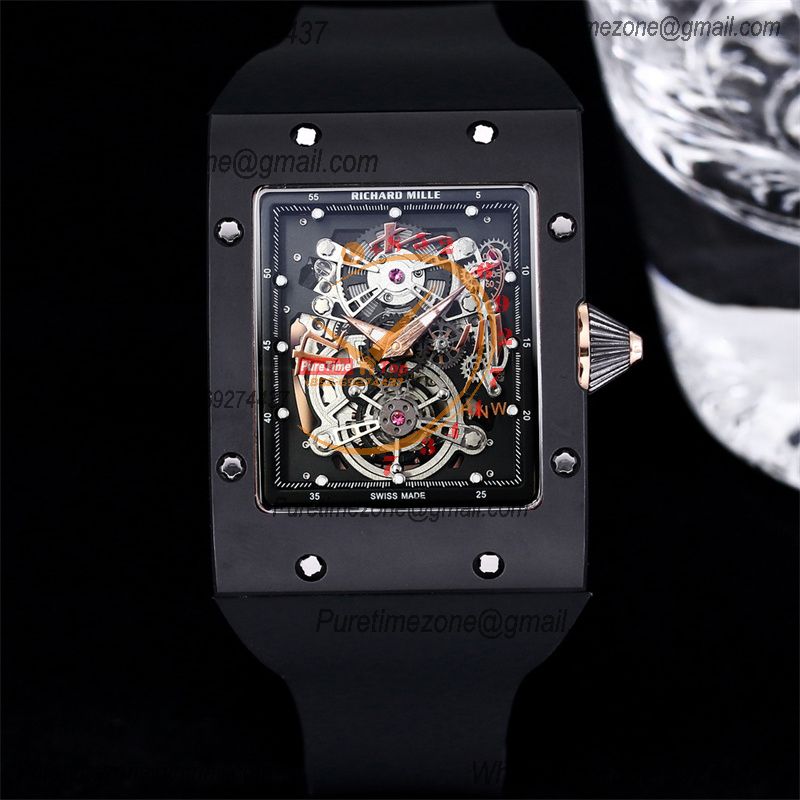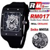 RM017 Miyota Automatic Mens Watch RMF Black Ceramics Case Skeleton Dial Black Rubber Strap CHS