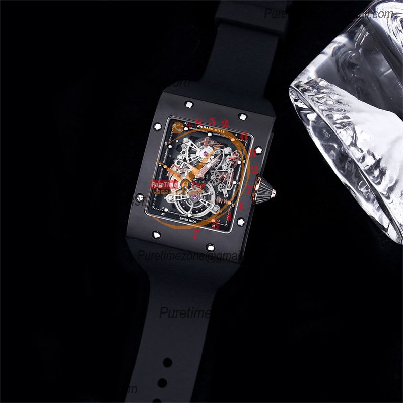RM12-01 José Balvin Automatic Tourbillon Mens Watch RMF Carbon Fiber Skeleton Dial All Black Rubber Strap CHS AAA
