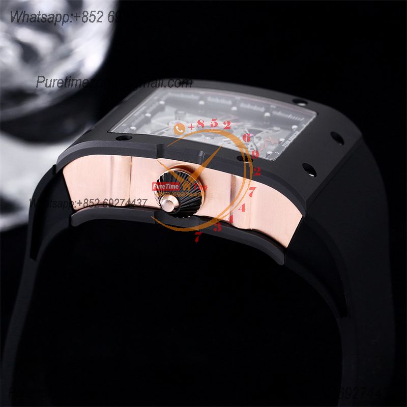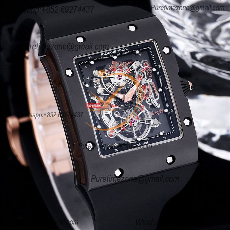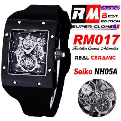 Home Richard Mille RM017 Miyota Automatic Mens Watch RMF Black Ceramics Case Skeleton Dial Black Rubber Strap CHS