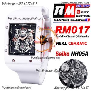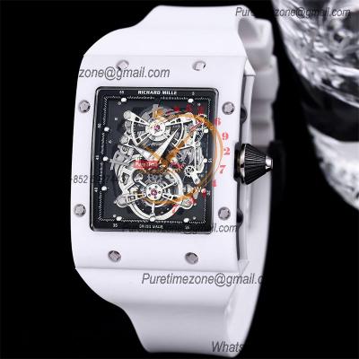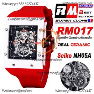 Home Richard Mille RM017 Miyota Automatic Mens Watch RMF White Ceramics Case Skeleton Dial Red Rubber Strap CHS