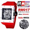 RM017 Miyota Automatic Mens Watch RMF White Ceramics Case Skeleton Dial Red Rubber Strap CHS