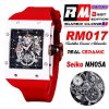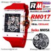 RM017 Miyota Automatic Mens Watch RMF White Ceramics Case Skeleton Dial Red Rubber Strap CHS