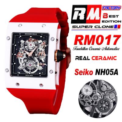 Home Richard Mille RM017 Miyota Automatic Mens Watch RMF White Ceramics Case Skeleton Dial Red Rubber Strap CHS