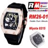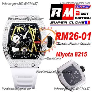 Home Richard Mille RM026-01 Tourbillon Panda M8215 Automatic Mens Watch RMF RG Diamonds Bezel Skeleton Dial Black Rubber Strap CHS