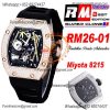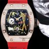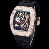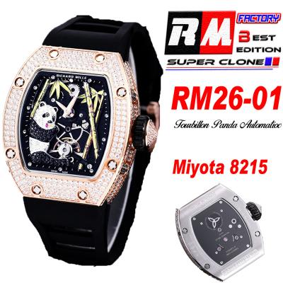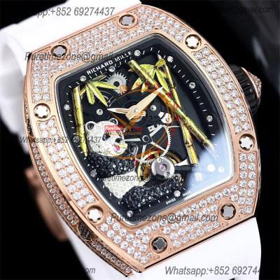 RM026-01 Tourbillon Panda M8215 Automatic Mens Watch RMF RG Diamonds Bezel Skeleton Dial Black Rubber Strap CHS