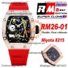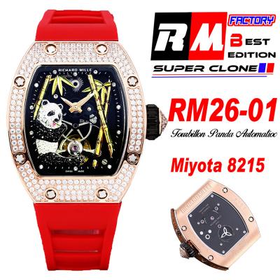 Home Richard Mille RM026-01 Tourbillon Panda M8215 Automatic Mens Watch RMF RG Diamonds Bezel Skeleton Dial Red Rubber Strap CHS