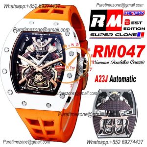 RM047 Samurai Tourbillon Automatic Mens Watch RMF White Ceramic Case Openworked Dial Orange Rubber Strap CHS $780.00 $520.00