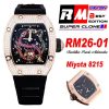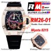 Home Richard Mille RM026-01 Tourbillon Serpent M8215 Automatic Mens Watch RMF RG Diamonds Bezel Skeleton Dial Black Rubber Strap CHS