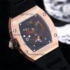RM026-01 Tourbillon Serpent M8215 Automatic Mens Watch RMF RG Diamonds Bezel Skeleton Dial Black Rubber Strap CHS