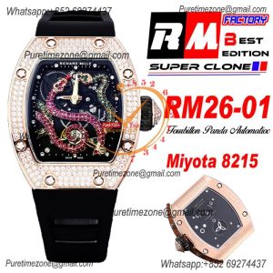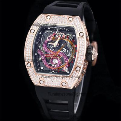 RM026-01 Tourbillon Serpent M8215 Automatic Mens Watch RMF RG Diamonds Bezel Skeleton Dial Black Rubber Strap CHS $630.00 $420.00