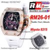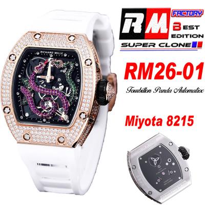 Home Richard Mille RM026-01 Tourbillon Serpent M8215 Automatic Mens Watch RMF RG Diamonds Bezel Skeleton Dial White Rubber Strap CHS