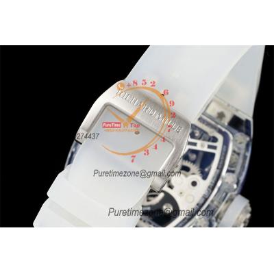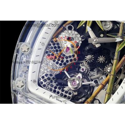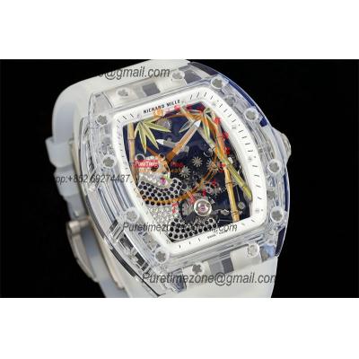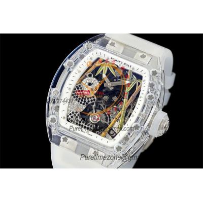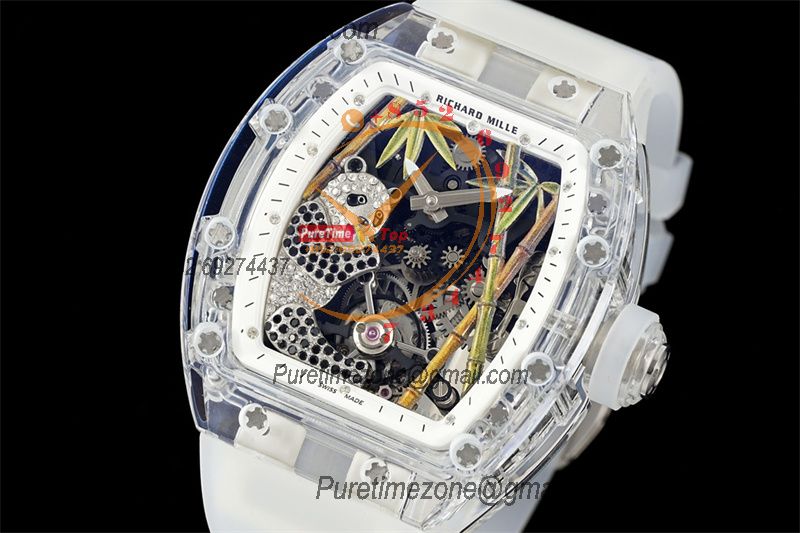 RM026 Transparent Real Tourbillon Hand Winding Mens Watch RMF Best Edition Panda Skeleton Dial White Rubber Strap CHS