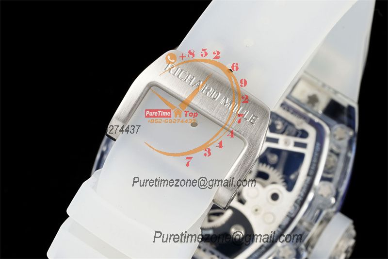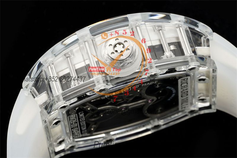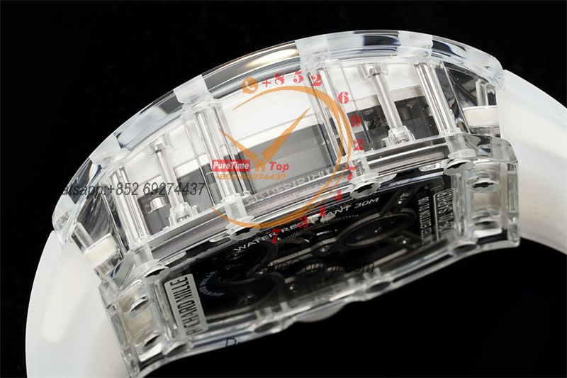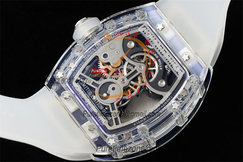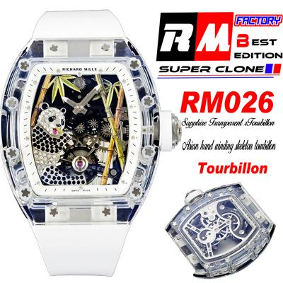 Home Richard Mille RM026 Transparent Real Tourbillon Hand Winding Mens Watch RMF Best Edition Panda Skeleton Dial White Rubber Strap CHS