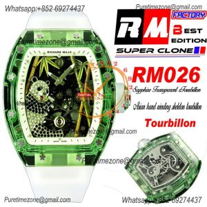 RM026 Green Transparent Real Tourbillon Hand Winding Mens Watch RMF Best Edition Panda Skeleton Dial Rubber Strap CHS $2,625.00 $1,750.00