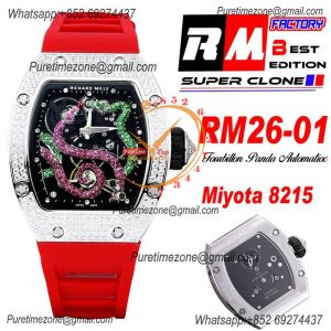 RM026-01 Tourbillon Serpent M8215 Automatic Mens Watch RMF SS Diamonds Bezel Skeleton Dial Red Rubber Strap CHS $600.00 $400.00