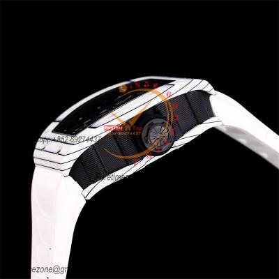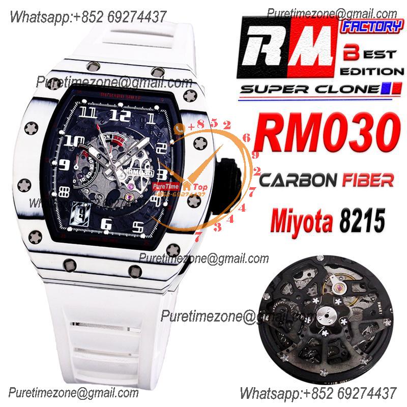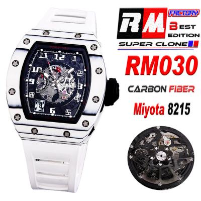 Home Richard Mille RM030 Miyota Automaitc Mens Watch Best Edition RMF Carbon Skeleton Dial White Rubber Strap CHS