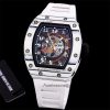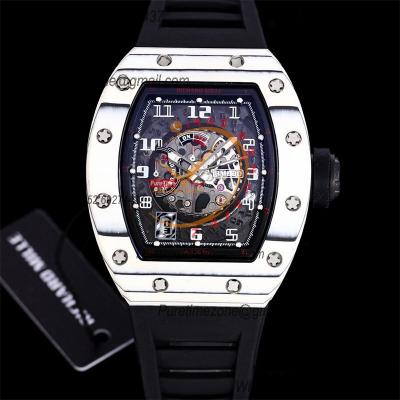 RM030 Miyota Automaitc Mens Watch Best Edition RMF Carbon Skeleton Dial White Rubber Strap CHS