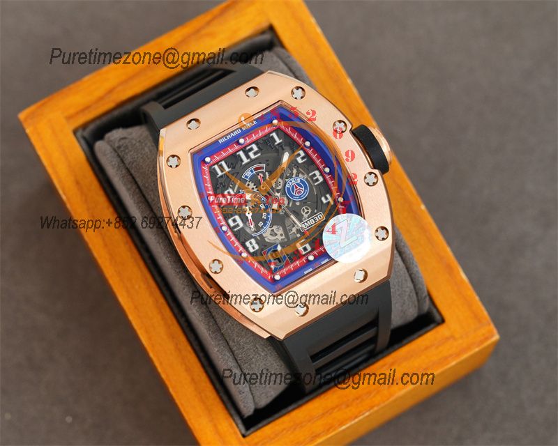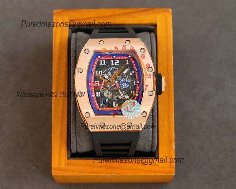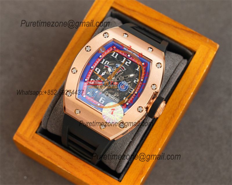 RM030 Miyota Automaitc Mens Watch RMF RG Skeleton Dial Black Rubber Strap CHS