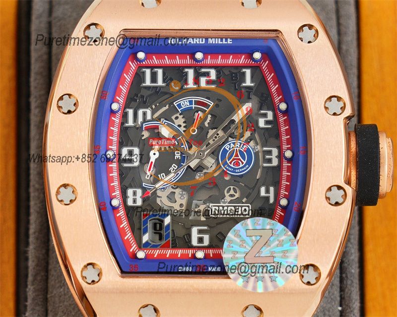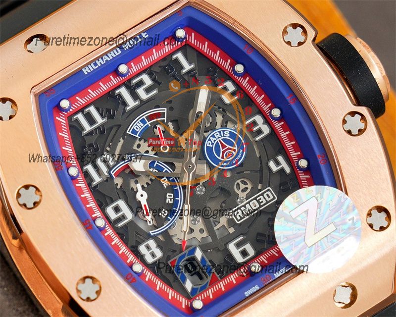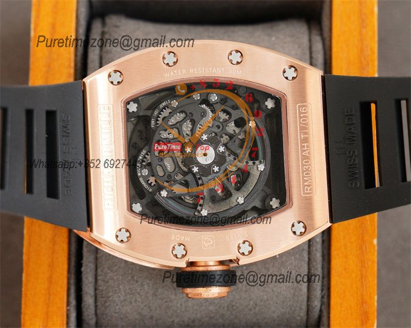 Home Richard Mille RM030 Miyota Automaitc Mens Watch RMF RG Skeleton Dial Black Rubber Strap CHS