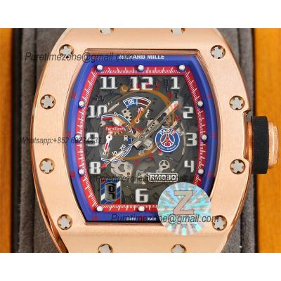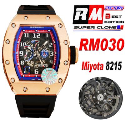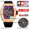 Home Richard Mille RM030 Miyota Automaitc Mens Watch RMF RG Skeleton Dial Black Rubber Strap CHS