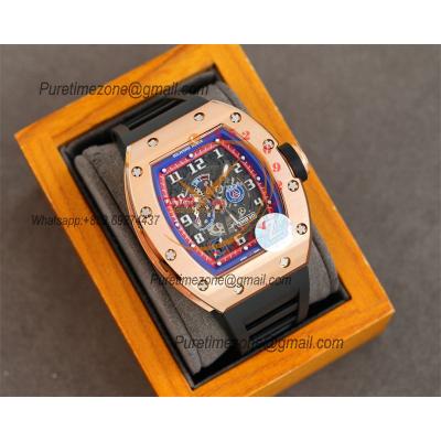 RM011 Felipe Massa A7750 Automatic Chronograph Mens Watch RMF Best Edition SS Black Dial Blue Rubber Strap CHS