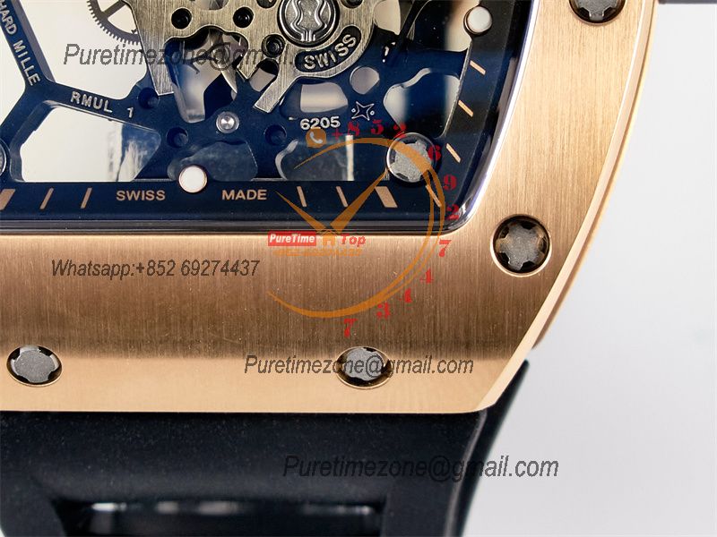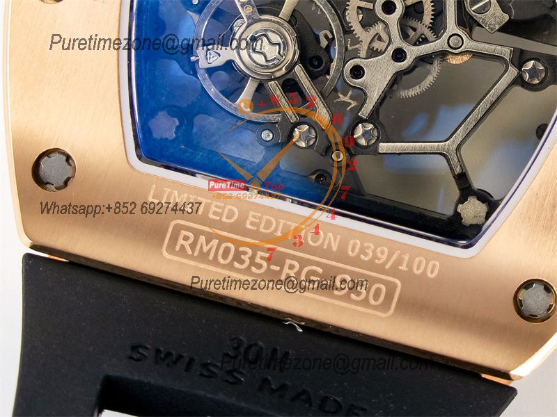 Movement:Asian clone RMUL1 manual movement, working spring wheel at same position as genuine watch