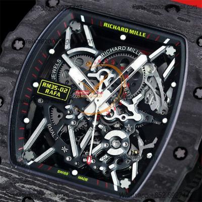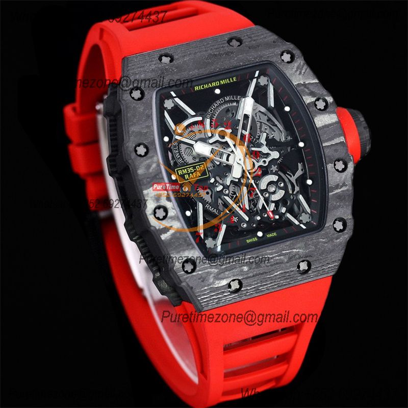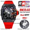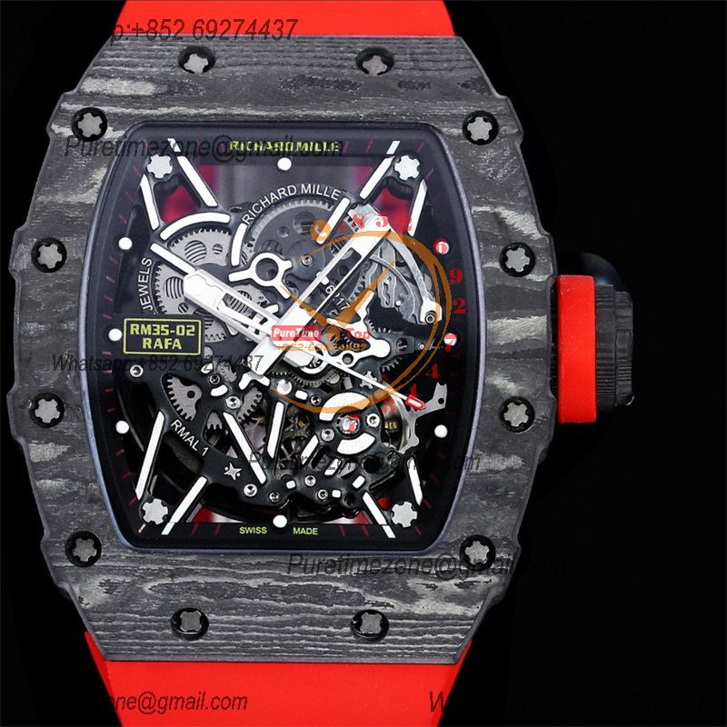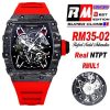 Home Richard Mille RM035-02 NTPT RMAL1 Autoamtic Mens Watch RMF Best Edition Black Carbon Skeleton Dial Red Rubber Strap CHS
