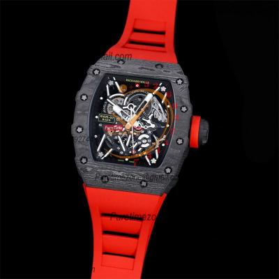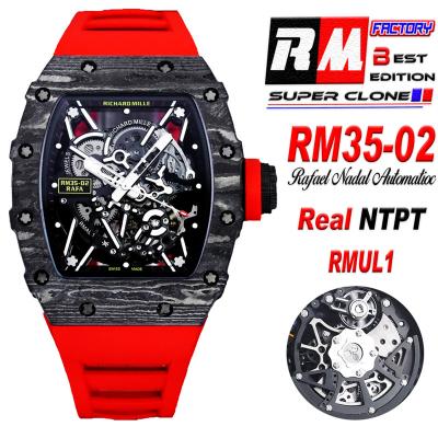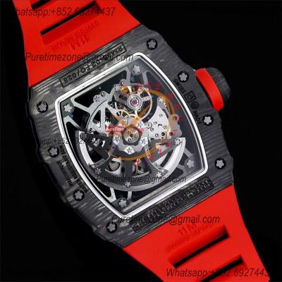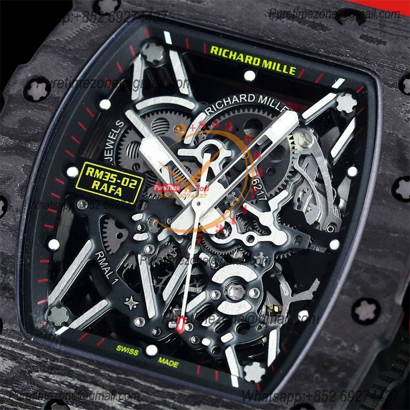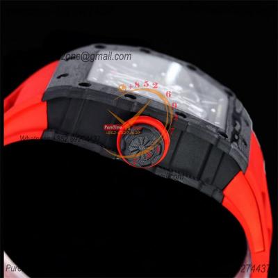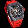 RM035-02 NTPT RMAL1 Autoamtic Mens Watch RMF Best Edition Black Carbon Skeleton Dial Red Rubber Strap CHS