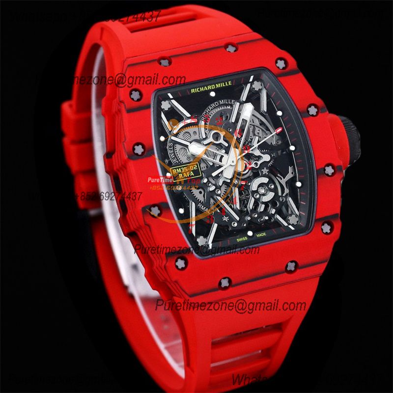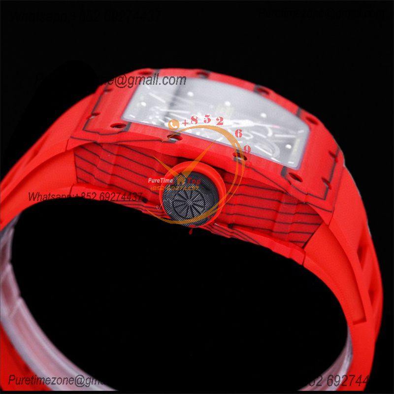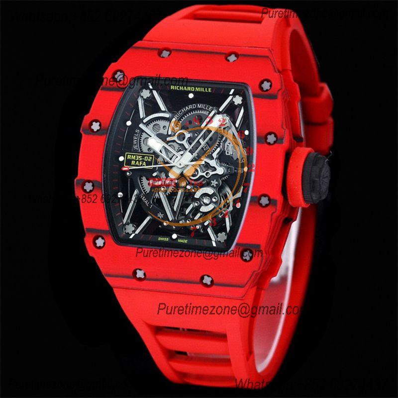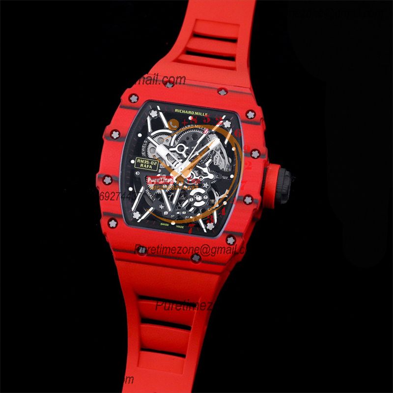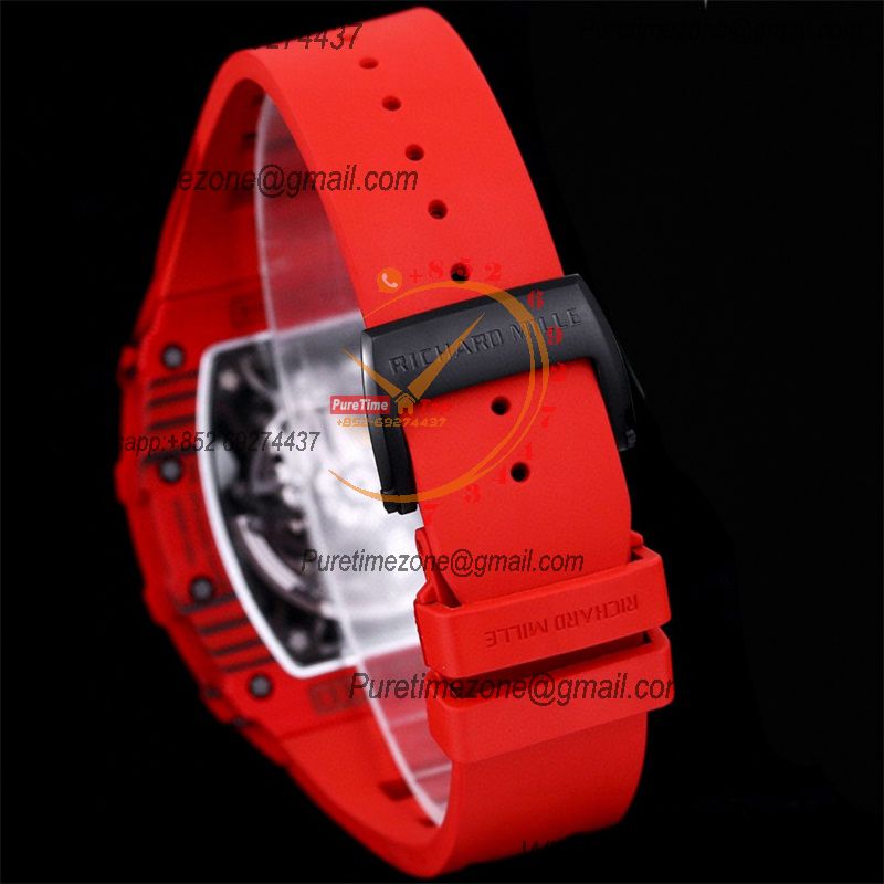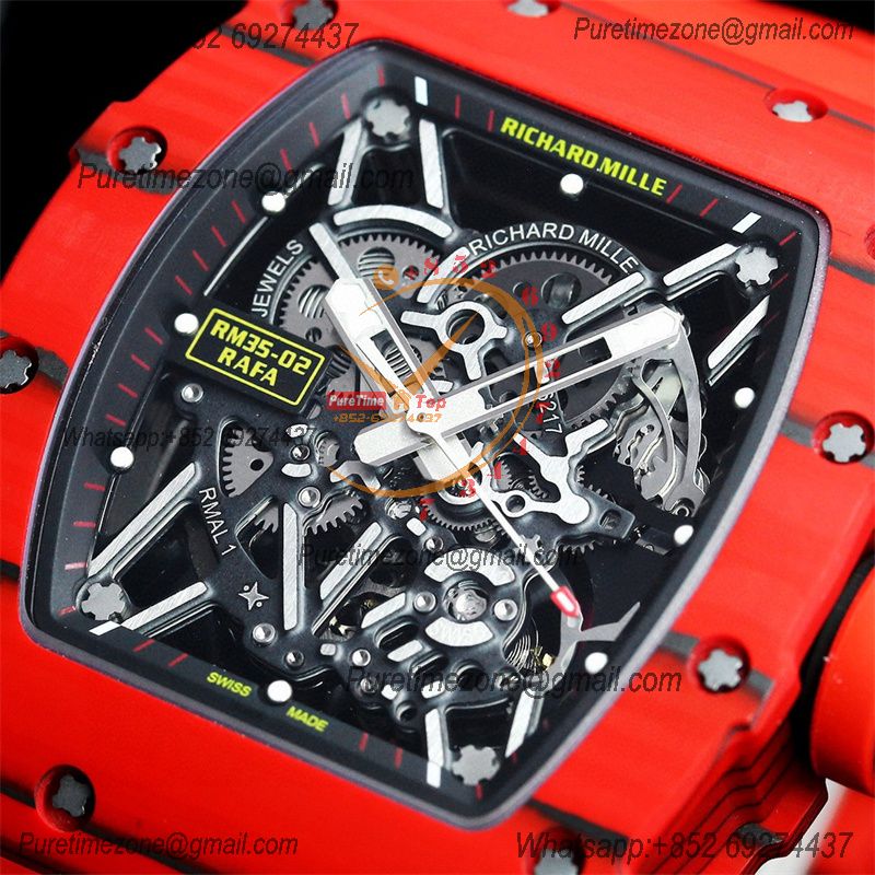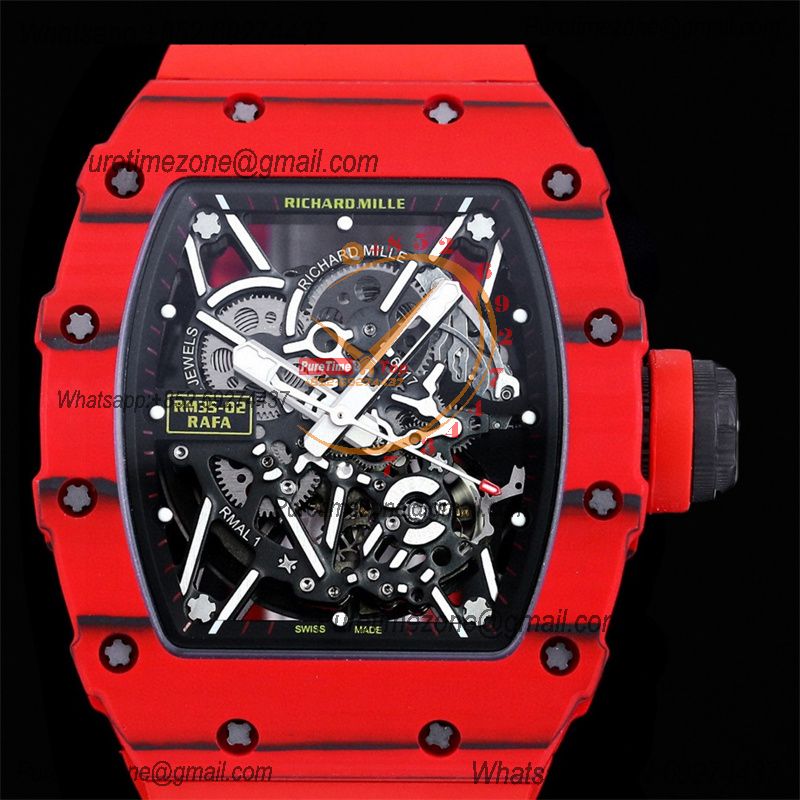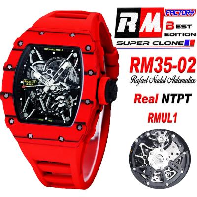 RM035-02 NTPT RMAL1 Autoamtic Mens Watch RMF Best Edition Red Carbon Skeleton Dial Rubber Strap CHS