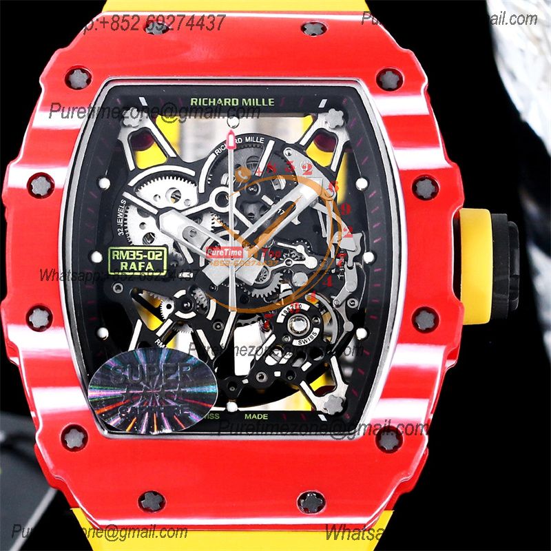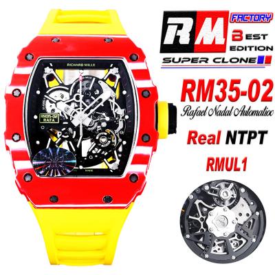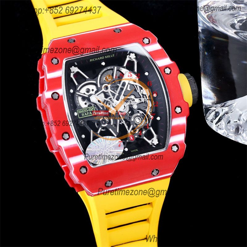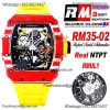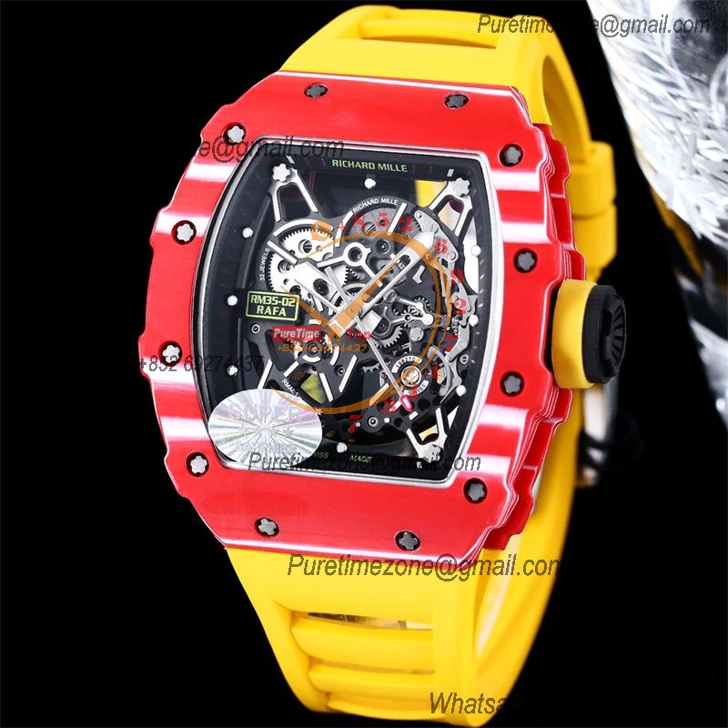 Home Richard Mille RM035-02 NTPT RMAL1 Autoamtic Mens Watch RMF Best Edition Red Carbon Skeleton Dial Yellow Rubber Strap CHS