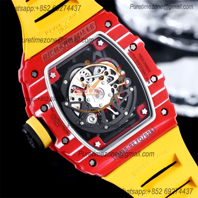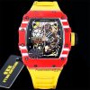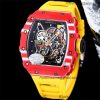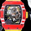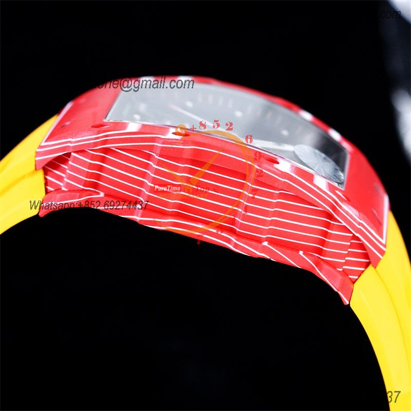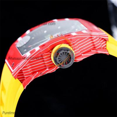 RM035-02 NTPT RMAL1 Autoamtic Mens Watch RMF Best Edition Red Carbon Skeleton Dial Yellow Rubber Strap CHS