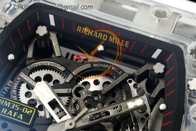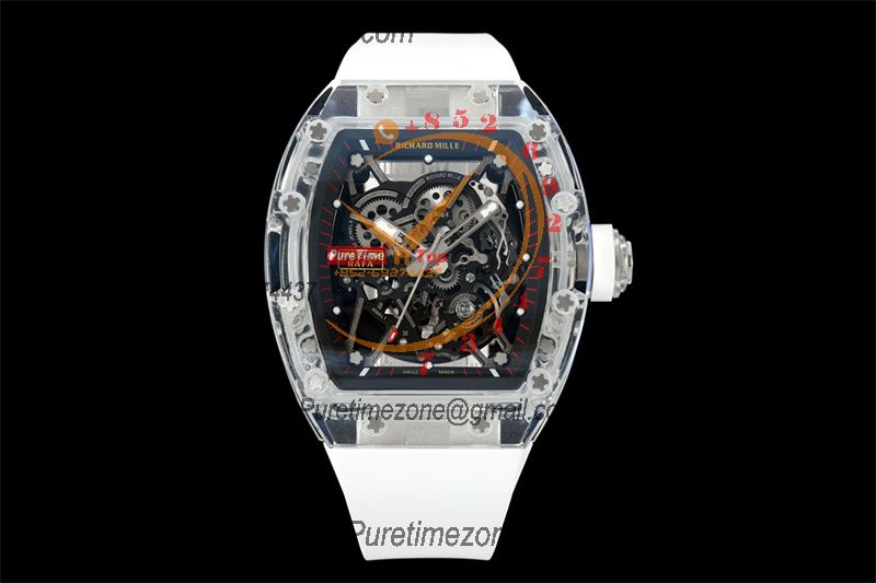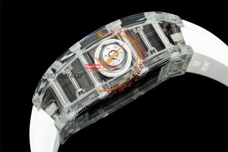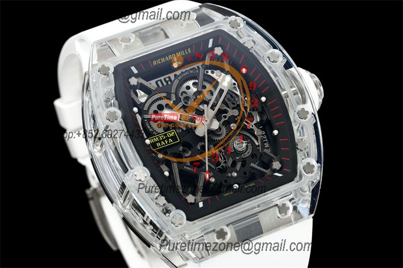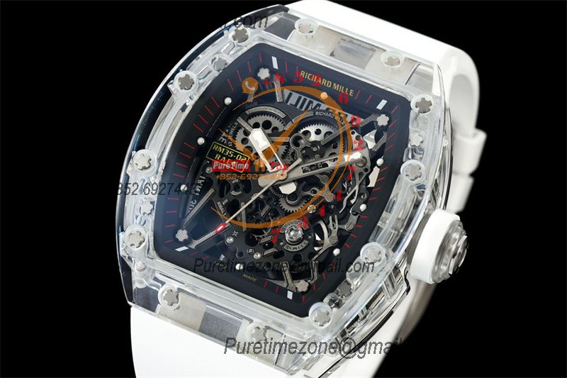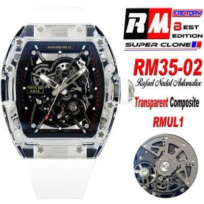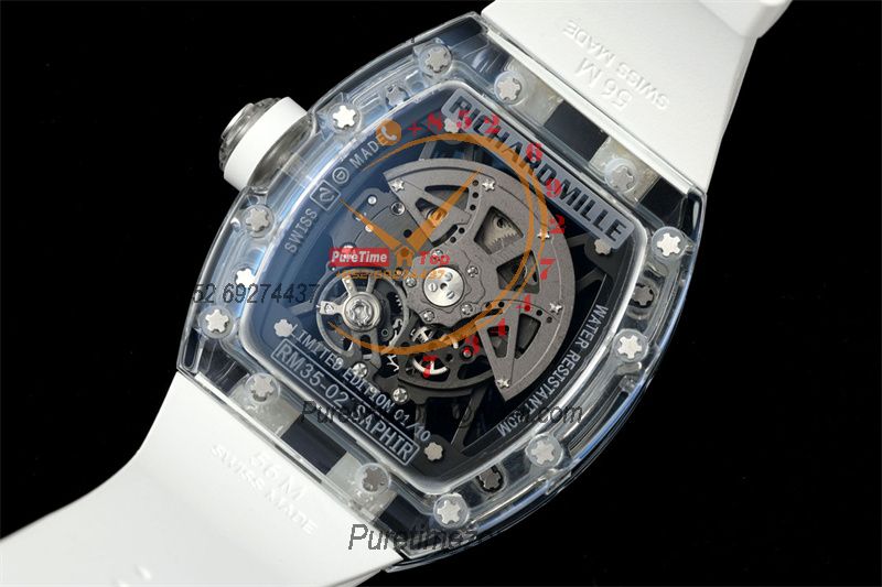 Home Richard Mille RM035-02 RMAL1 Autoamtic Mens Watch RMF Best Edition Transparent Skeleton Dial White Rubber CHS
