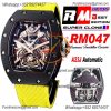 RM27-04 Rafael Nadal A23J Automatic Mens Watch RMF Best Edition Black NTPT Carbon Tennis Racket Skeleton Dial Yellow Nyl