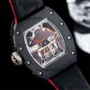 RM12-01 José Balvin Automatic Tourbillon Mens Watch RMF Carbon Fiber Skeleton Dial All Black Rubber Strap CHS AAA