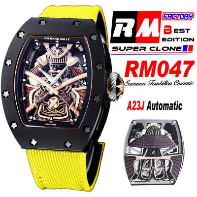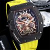 RM047 Samurai Tourbillon Automatic Mens Watch RMF Black Ceramic Case Openworked Dial Yellow Nylon Strap CHS