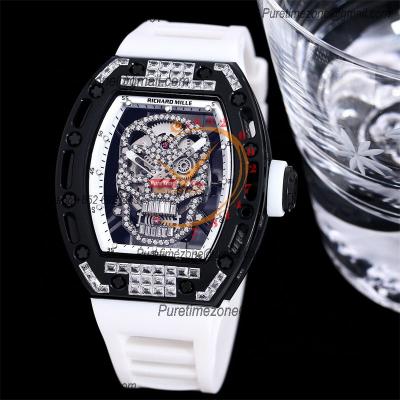 RM052 Polished Miyota 8215 Automatic Mens Watch RMF DLC Full Paved Diamonds Skull Dial Black Rubber CHS