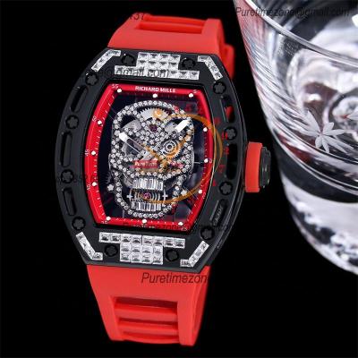 RM052 Polished Miyota 8215 Automatic Mens Watch RMF DLC Full Paved Diamonds Skull Dial Red Rubber CHS $645.00 $430.00
