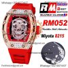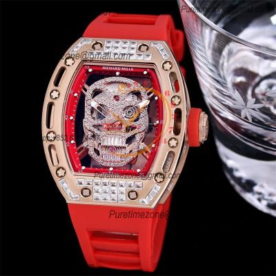 RM052 Polished Miyota 8215 Automatic Mens Watch RMF RG Full Paved Diamonds Skull Dial Red Rubber CHS