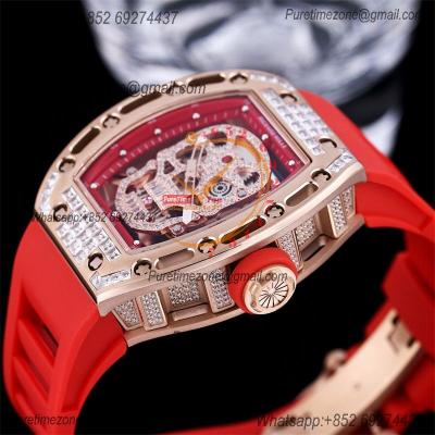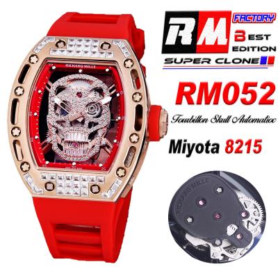 Home Richard Mille RM052 Polished Miyota 8215 Automatic Mens Watch RMF RG Full Paved Diamonds Skull Dial Red Rubber CHS