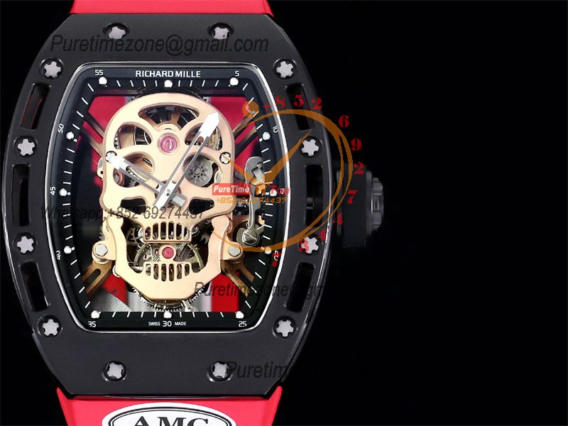RM052 Real Tourbillon Hand Winding Mens Watch Best Edition AMGF Steel Case Skull Dial Red Rubber Strap CHS $1,875.00 $1,250.00